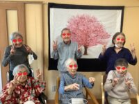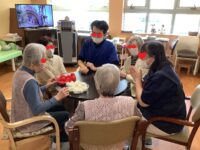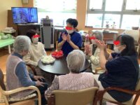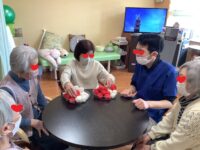 こちらは皆さんで行っているレクリエーションです。指導しているスタッフが考えているんですが、今回初お目見えのものでした!